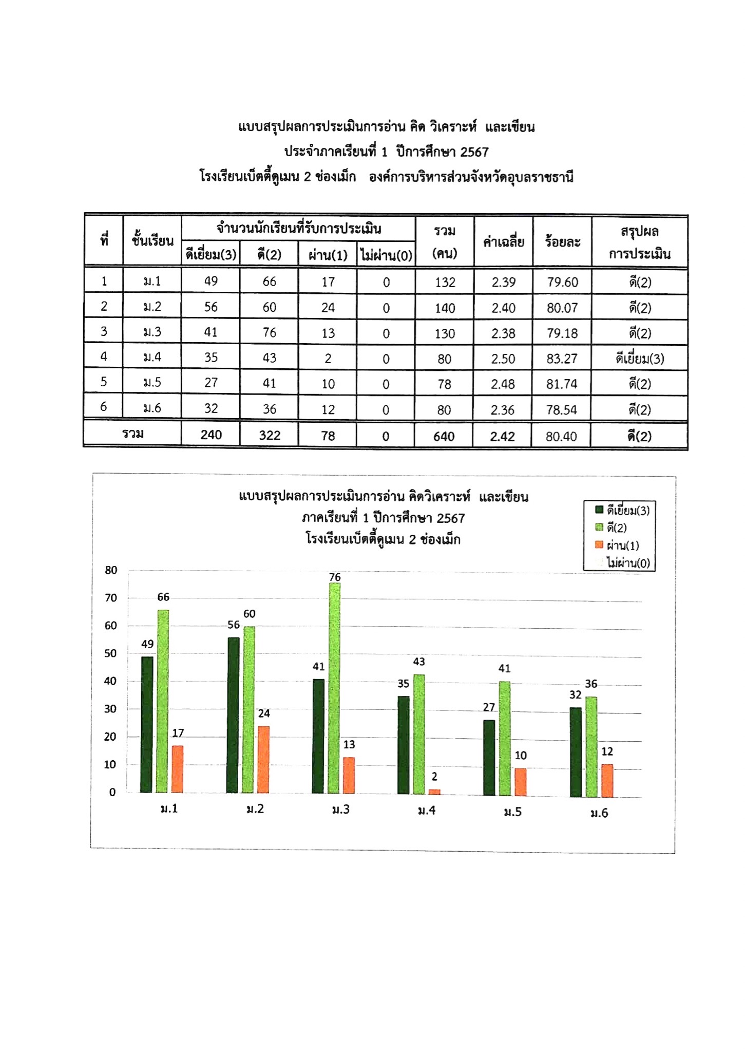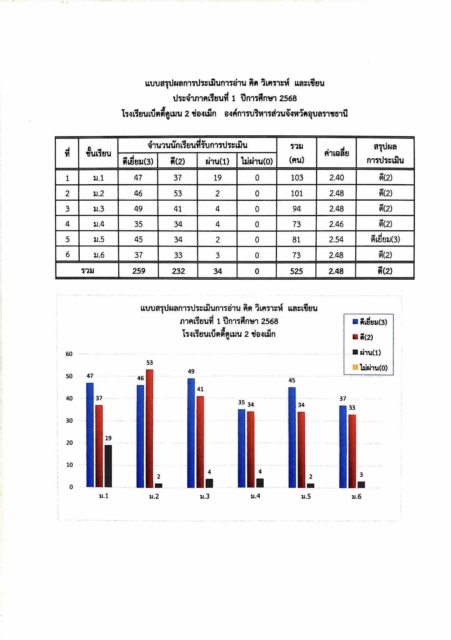 เปรียบเทียบคะแนนอ่าน คิด วิเคราะห์