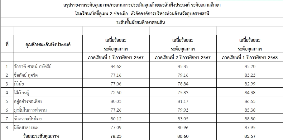 เปรียบเทียบคะแนนคุณลักษณะอันพึงประสงค์
