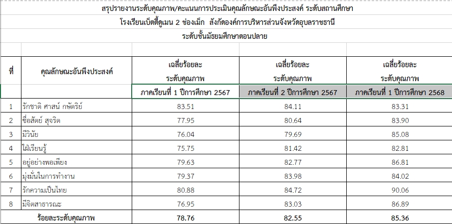 เปรียบเทียบคะแนนคุณลักษณะอันพึงประสงค์